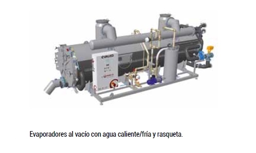 Además de los evaporadores de bomba de calor, podemos encontrar evaporadores con aporte de agua caliente/fría y evaporadores de recompresión mecánica del vapor: