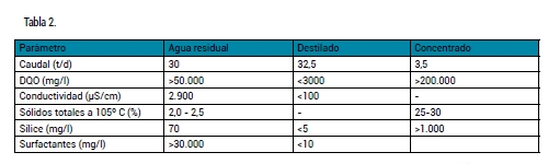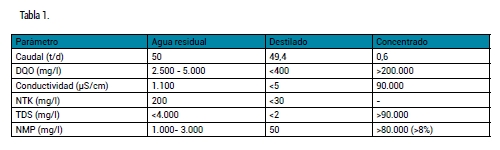 Las 34,5 t/d de destilado que se obtienen de los dos evaporadores se tratan en el biorreactor de membrana (MBR), reduciendo la producción de lodos de 500 kg/d a menos de 20 kg/día y, además, se obtiene un efluente final de mayor calidad como resultado de una menor carga de DQO en cabecera de la EDAR.