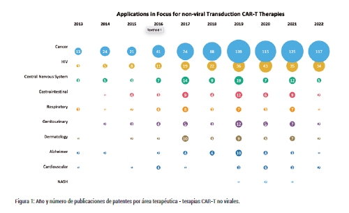 - La mayoría de las patentes en el área de las terapias CAR-T no virales son relativamente nuevas.