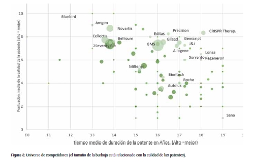 - La calidad general de las patentes (es decir, el número de países y agencias reguladoras donde están registradas) es muy alta.