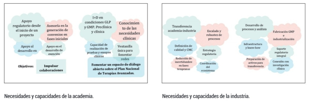 Por parte de la industria biotecnológica, las prioridades pasan por reforzar los mecanismos de transferencia academia-empresa, definir parámetros de calidad desde el inicio y reducir incertidumbres regulatorias que permitan escalar e industrializar las terapias de forma eficaz. Las empresas aportan, entretanto, capacidades críticas en desarrollo de procesos, fabricación GMP, industrialización, soporte regulatorio integral y preparación de activos para su transferencia.