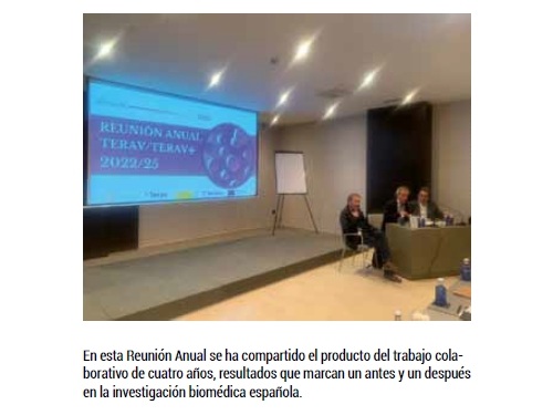 Esta reunión 2025, que contó con la presencia de la directora del Instituto de Salud Carlos III, Dña. Marina Pollán, además de conformar un escaparate de resultados que marcan un antes y un después en la investigación biomédica española, ha tenido un singular significado toda vez que, tras una nueva convocatoria pública, la Red Española de Terapias Avanzadas (TERAV) ha pasado el testigo a la renovada TERAV+, marcando una etapa en la que se aspira a dar un impulso, aún mayor si cabe, a las terapias avanzadas.