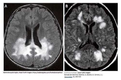 En las enfermedades desmielinizantes adquiridas como la esclerosis múltiple (EM), el sistema inmune reacciona de forma anómala ante estímulos externos (tóxicos, infecciones virales, etc.) produciendo auto-anticuerpos contra la mielina y favoreciendo que las células inflamatorias infiltren el parénquima cerebral para generar un microambiente tóxico. La mielina es la diana selectiva de este proceso y, como consecuencia de la perdida de la vaina de mielina de los axones se produce una alteración severa de la transmisión del impulso nervioso y una degeneración (Fig. 1B) [2].
