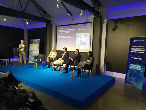 La segunda mesa redonda abordó la gobernanza de datos en el contexto de la IA, con la participación de expertos como Luis Gaytán Ayala (Clínica Universidad de Navarra) y Galo Peralta (IDIVAL), quienes discutieron la importancia de proteger la privacidad de los pacientes sin frenar los avances tecnológicos. Guiomar León (Sermes CRO) reflexionó sobre los desafíos del marco normativo europeo, y Manuel Bosch Arcos (Grupo Ribera) subrayó la importancia de la ciberseguridad para mantener la confianza en el manejo de datos sensibles.