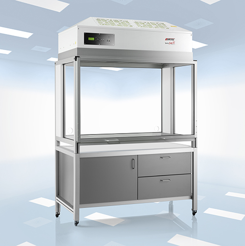 La campana de flujo laminar FBS de Spetec (probada y certificada por el Instituto Fraunhofer de Ingeniería de Fabricación y Automatización) está disponible en varias versiones y medidas, ya sea como unidad independiente basado en un soporte con ruedas, o como versión de sobremesa. Además, existen múltiples opciones modulares compatibles con la versión básica: Existe en versión cerrada con puerta corredera o en versión semi-abierta con cortina corta y se deja equipar con dispositivos de aspiración. Se puede utilizar en áreas de difícil acceso para equipar subáreas con condiciones de contaminación controlada, respectando las posibilidades individuales de ubicación. Tambíen se puede instalar directamente encima de varios puestos de trabajo o de una máquina y se puede combinar con una cortina circular para crear así una zona confinada y controlada.